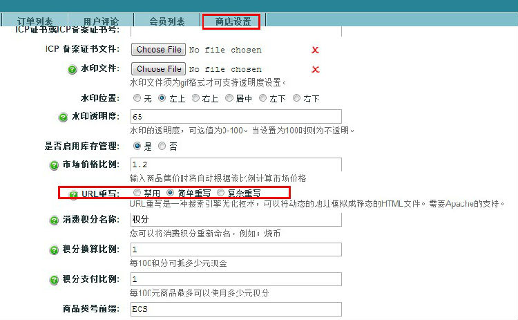 5、登錄ECShop后臺(tái),開(kāi)啟靜態(tài)化;