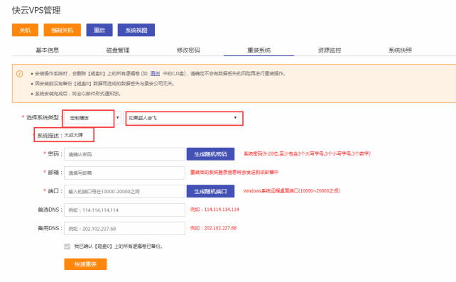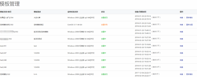 使用定制模板開通和重裝與正常的開通和重裝操作相同,需注意的是要找到對應(yīng)的定制模板進行開通和重裝(系統(tǒng)描述為定制模板頁面輸入的模板簡介),如下圖: