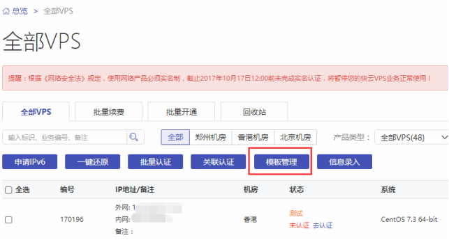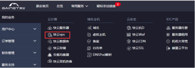 1、登錄會員中心,進入快云VPS列表頁面,如下圖所示: