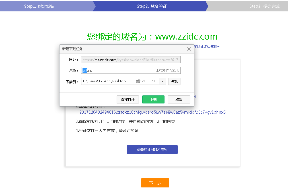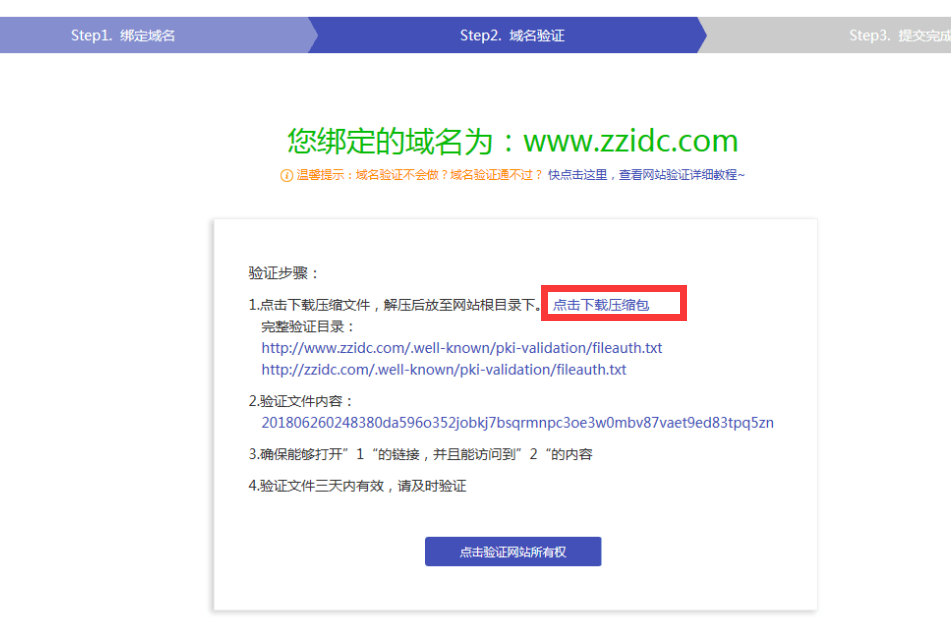 第一步:下載驗(yàn)證文件“點(diǎn)擊下載壓縮包”,將解壓后的文件放置m.0595cq.com網(wǎng)站跟目錄
