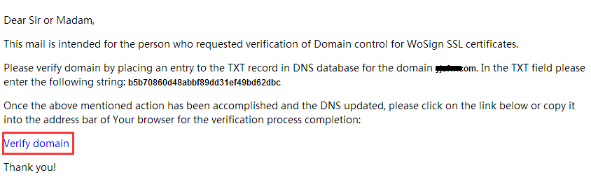 域名驗證選擇郵箱驗證,選擇以上郵箱中的一種,打開對應(yīng)的郵箱(收到如下圖的郵件),點擊驗證鏈接。