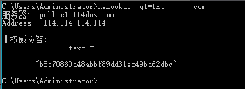 通過:nslookup -qat=txt 申請的域名.com 查詢