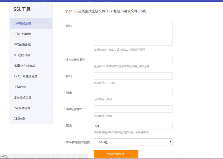 上面是CSR生成地址 生成之后請保存KEY和CSR