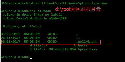 復(fù)制代碼mkdir d:\root\.well-known\pki-validation