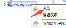 IIS服務(wù)器,找到對域名站點,右鍵-->瀏覽,可彈出網(wǎng)站根目錄,然后根據(jù)上面提到的方法創(chuàng)建.well-known/pki-validation目錄,將certum.txt復(fù)制在此目錄即可。