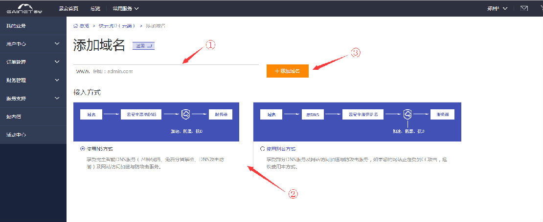 第三步:點擊完成向?qū)?,下一步,進入域名激活頁面,域名激活根據(jù)第一部中選擇的接入方式不同分為:NS和CNAME兩種激活方式。