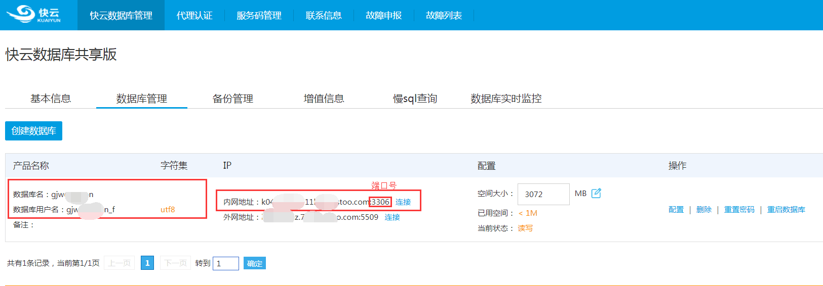 云數(shù)據(jù)庫在開通之后會提供如下信息,可以在會員中心或業(yè)務管理平臺查看如下信息: