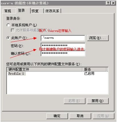 為了安全,我公司SERVU軟件是設置獨立的賬戶運行,如果用戶不是太了解刪除了我們建立的SERVU這個用戶或者改了密碼就會造成軟件不能正常啟動,如下圖
