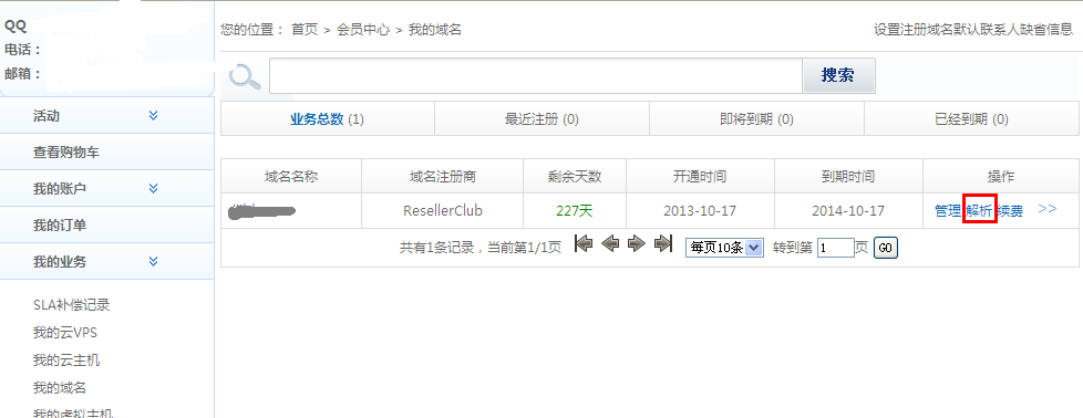 1.登陸“會員中心”,點擊“我的域名”。