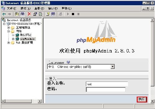 輸入用戶名和密碼點擊執(zhí)行進入數(shù)據(jù)庫