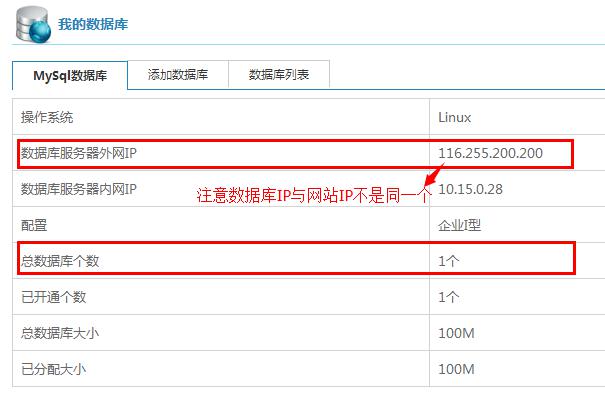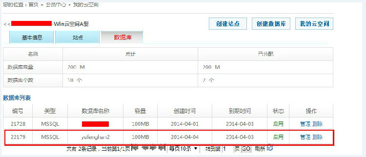 3.創(chuàng)建完成后,在數(shù)據(jù)庫管理頁面會有創(chuàng)建好的數(shù)據(jù)庫列表