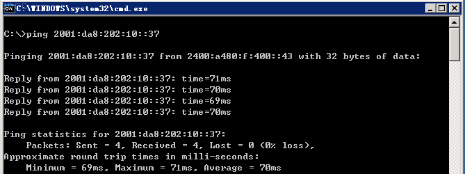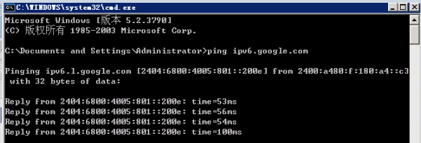 3.測(cè)試IPv6地址是否可以正常通信,測(cè)試方法通過(guò)ping支持IPv6的網(wǎng)站域名或IPv6地址