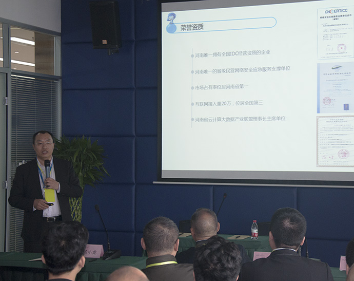 下午2點,河南島親實地參觀了景安互聯(lián)網(wǎng)數(shù)據(jù)中心,詳細了解了景安網(wǎng)絡的互聯(lián)網(wǎng)基礎設施建設及應用。楊小龍介紹了景安網(wǎng)絡的發(fā)展概況,著重對景安在大數(shù)據(jù)建設方面取得的成績和面臨的機遇與挑戰(zhàn),以及云計算與快云平臺的快速發(fā)展做出相關(guān)介紹,景安網(wǎng)絡憑技術(shù)、人才優(yōu)勢為30余萬企業(yè)用戶提供了云計算服務,充分保障和維護了用戶網(wǎng)絡安全和利益。陳澤民由衷稱贊了景安網(wǎng)絡近年來所取得的成績,對景安在河南及全國的持續(xù)上升勢態(tài)給予了高度評價。
